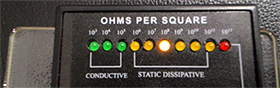 Surface resistivity: rubber head-10e8~9ohm/sq. + stick-10e9~11ohm/sq.